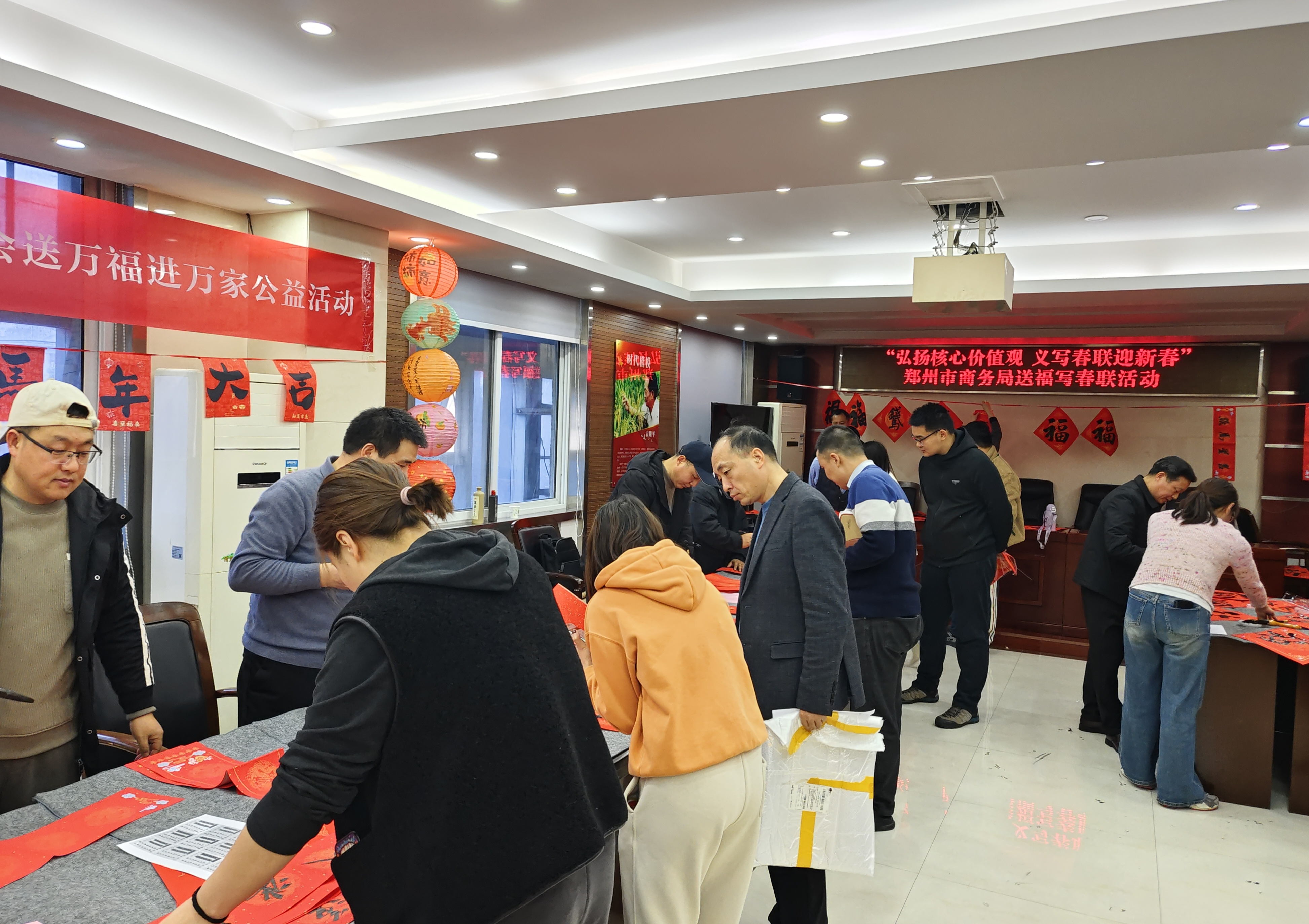 春节将至,为进一步弘扬中华优秀传统文化,营造欢乐祥和的节日氛围,2月1日,郑州市商务局开展送福写春联活动。